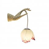 Suspended from the fingertips is a beautifully crafted lotus bloom shade, featuring soft pink gradients on the petals that mimic a real flower in light. This sconce is perfect for creating a serene ambiance in meditation rooms, spas, entryways, or as a unique bedside accent.