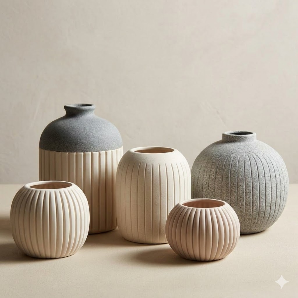 Elevate your living space with the understated elegance of our Serene Fluted Ceramic Set. This duo features a sophisticated matte finish and a classic vertical ribbed texture that brings a tactile, sculptural element to any room.